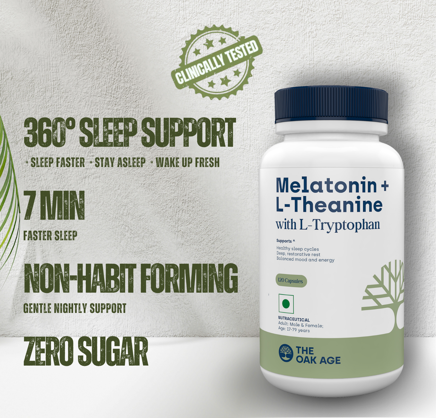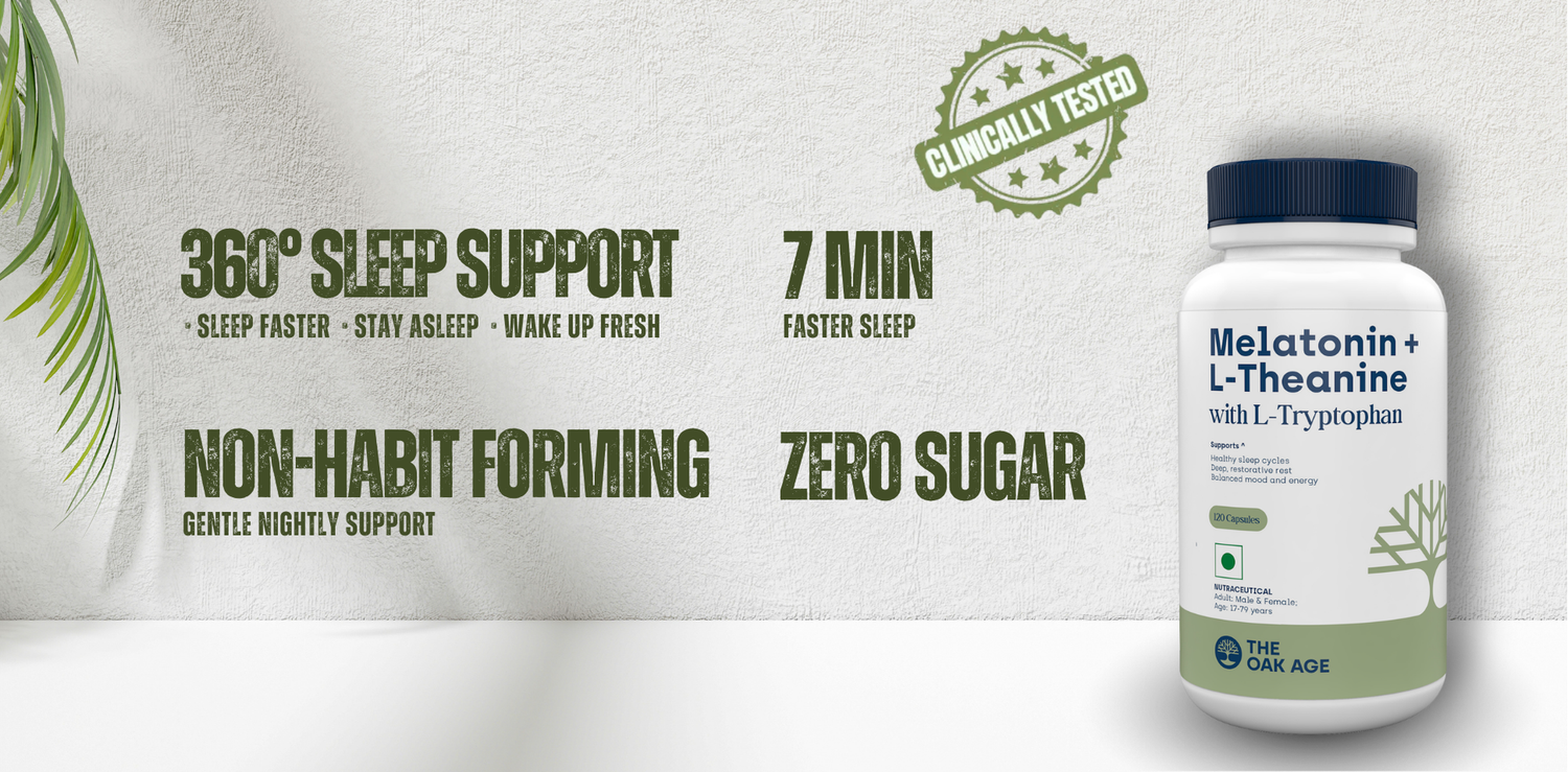 Melatonin only signals your body it's time to sleep. Our formula adds L-Theanine to calm a racing mind, L-Tryptophan to deepen sleep cycles and support natural melatonin production, and Vitamin B6 for overnight repair. Four ingredients, each covering a different part of the sleep process.
